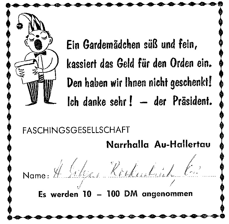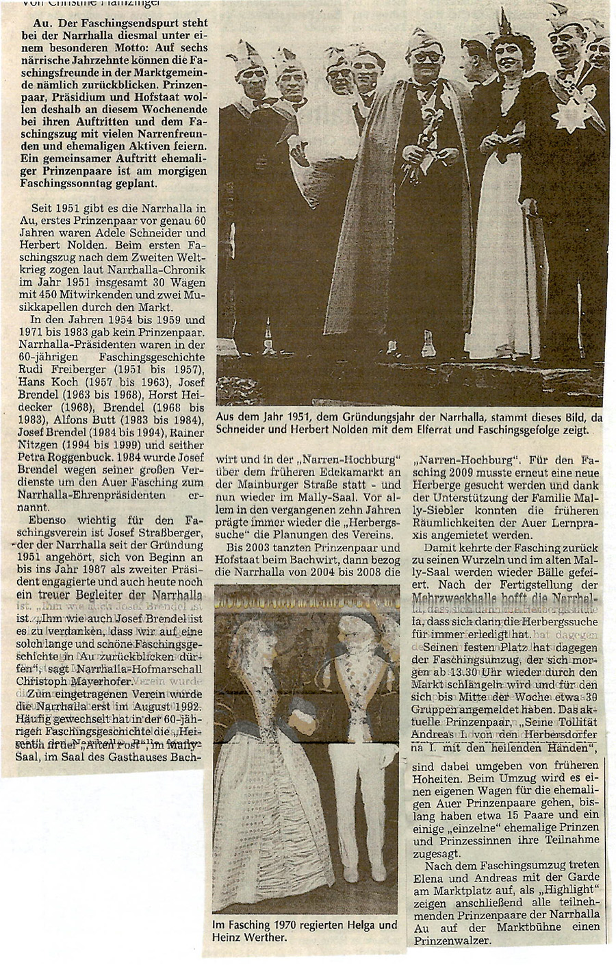 Seit ihrer Gründung steht die Narrhalla Au für Lebensfreude, Gemeinschaft und gelebtes Brauchtum. In unserer Chronik blicken wir zurück auf viele unvergessliche Momente, große Auftritte und die Menschen, die unseren Verein über die Jahre geprägt haben.